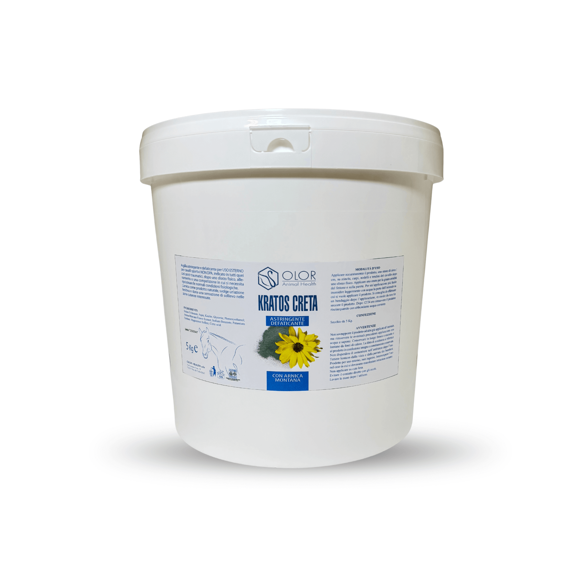 MODALITA’ D’USO: Applicare accuratamente il prodotto, uno strato di circa 1cm, su stinchi, carpi, nodelli e tendini del cavallo dopo uno sforzo fisico. Applicare uno strato per la giusta umidità del fettone e sulla parete. Per un’applicazione più facile inumidire leggermente con acqua la parte dell’animale su cui si vuole applicare il prodotto. Si consiglia di effettuare un bendaggio dopo l’applicazione con un film plastico, in modo da non far seccare il prodotto. Dopo 12/24 ore rimuovere il prodotto risciacquando con abbondante acqua corrente.